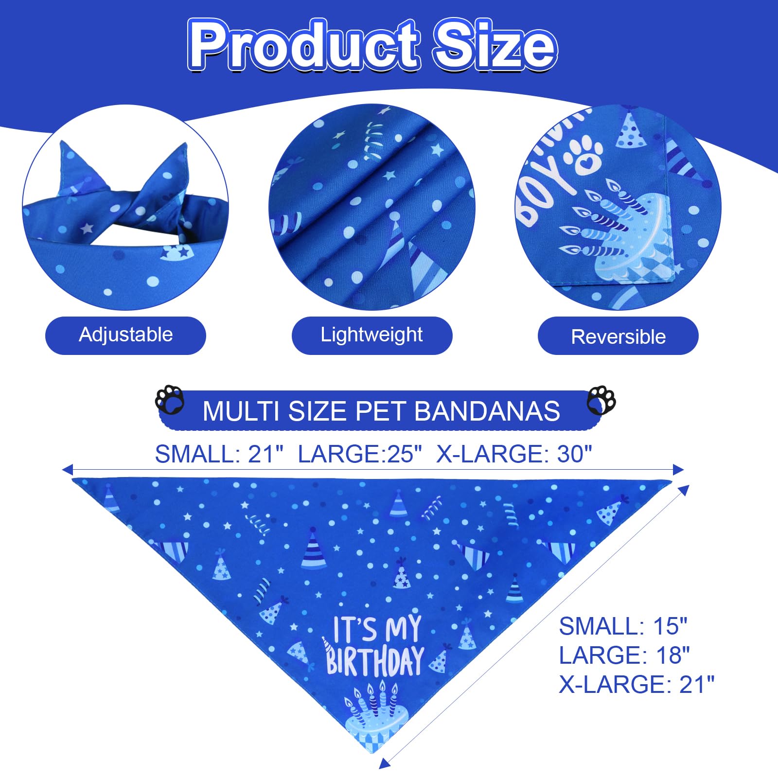- Birthday Dog Bandana: Birthday bandana with birthday elements is perfect for celebrating your beloved pets birthday, which is fashionable , "BIRTHDAY BOY" printed on the front is very suitable for birthday parties, and "IT'S MY BIRTHDAY"printing on the back, let's make your pet show lovely.